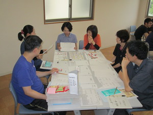 「もしも、あなたが避難所生活を送ることになったら…。」という仮定の下に、架空のコミュニティセンターに避難所を設置するという、シュミレーションをグループに分かれてしました。