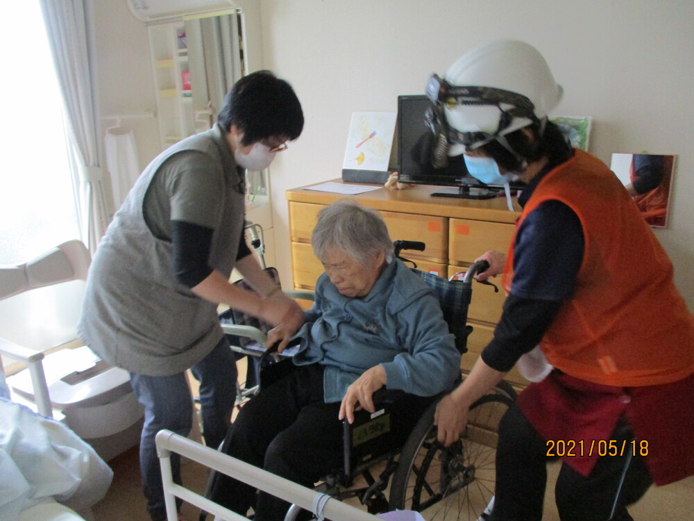 ※訓練のため、移乗を安全に行うために、補助員が一人ついています。