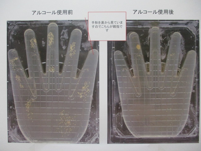 正しい手洗いの前との比較写真をみると菌の多さの違いがあります