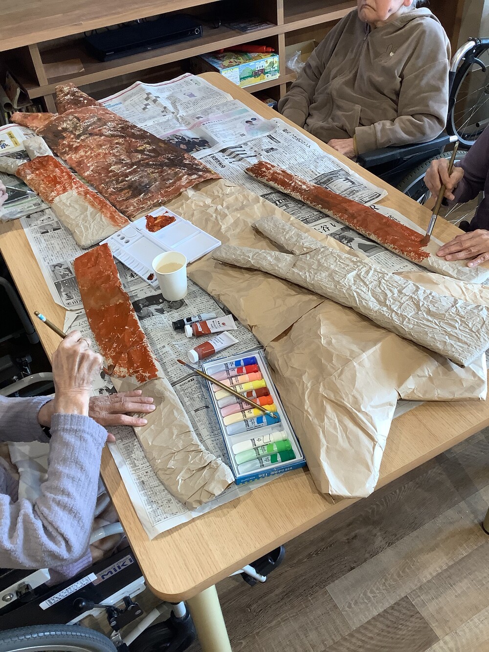次に絵具を使って色塗りもお手伝いしていただきました。